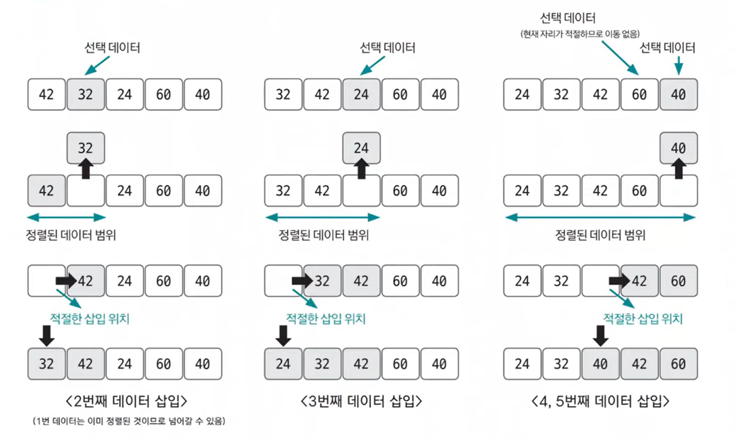 ② 현재 선택한 데이터가 정렬된 데이터 범위에 삽입될 위치를 탐색