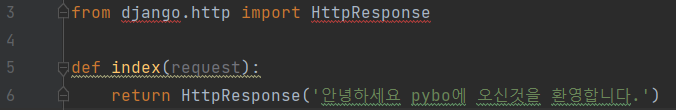 index 함수를 보면 HttpResponse를 호출하는 것을 볼 수 있다.