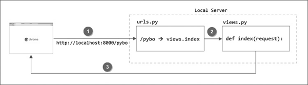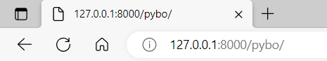 - 브라우저에서 로컬 서버로 http://localhost:8000/pybo 페이지를 요청하면