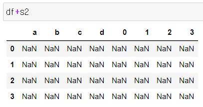 df와 s2에 + 연산을 사용하면 NaN이 출력된다.