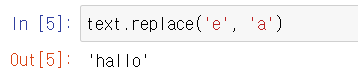 'e'를 'a'로 바꾸고 싶으면 replace('e', 'a')와 같이 작성해 주면 된다.